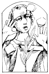 Atribúty: odev diakona, kameň