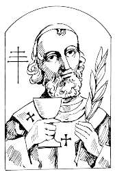 Atribúty: pápežská tiara, kalich, palma